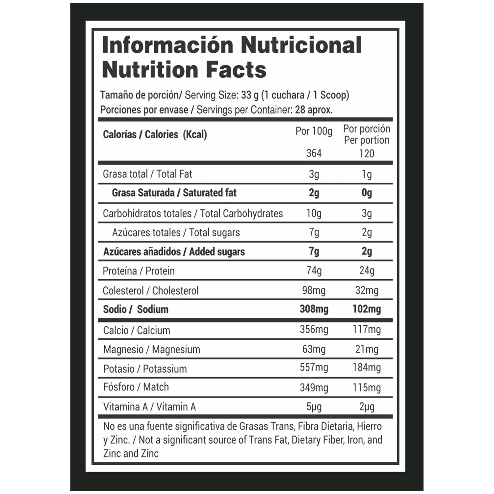 Proteína Aislada de Suero de Leche, Hidrogenado de Coco, Colágeno Hidrolizado, Proteína Aislada de Soya, Aminoácidos de Cadena Ramificada (BCAA: L-leucina, L-isoleucina, L-Valina), L-Carnitna, Sabor a Vainilla Cream, Lecitina de Soya, Goma Xantan (Estabilizante), Sucralosa (Endulzante), Acesulfame K:(Endulzante). ALÉRGENOS: CONTIENE LECHE, SOYA. FENILCETONÚRICOS: CONTIENE FENILALANINA.